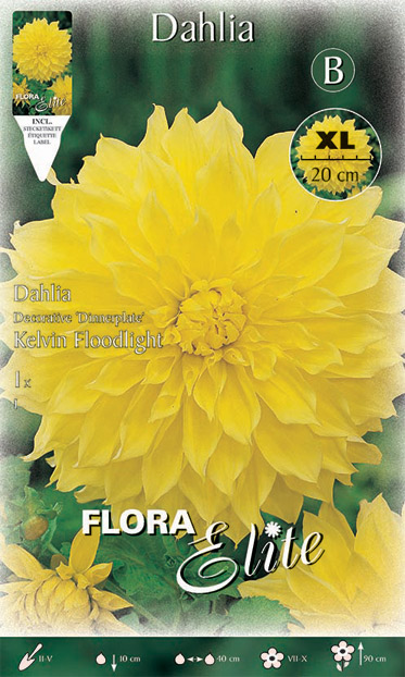 Μονόχρωμη Ντάλια με πελώριο άνθος, μεγέθους πιάτου 30 εκ. σε κίτρινο χρώμα. Βολβώδες φυτό ανοιξιάτικης φύτευσης το ύψος του οποίου μπορεί να φτάσει τα 0,90 μέτρα. Η κάθε συσκευασία περιέχει 1 βολβό.