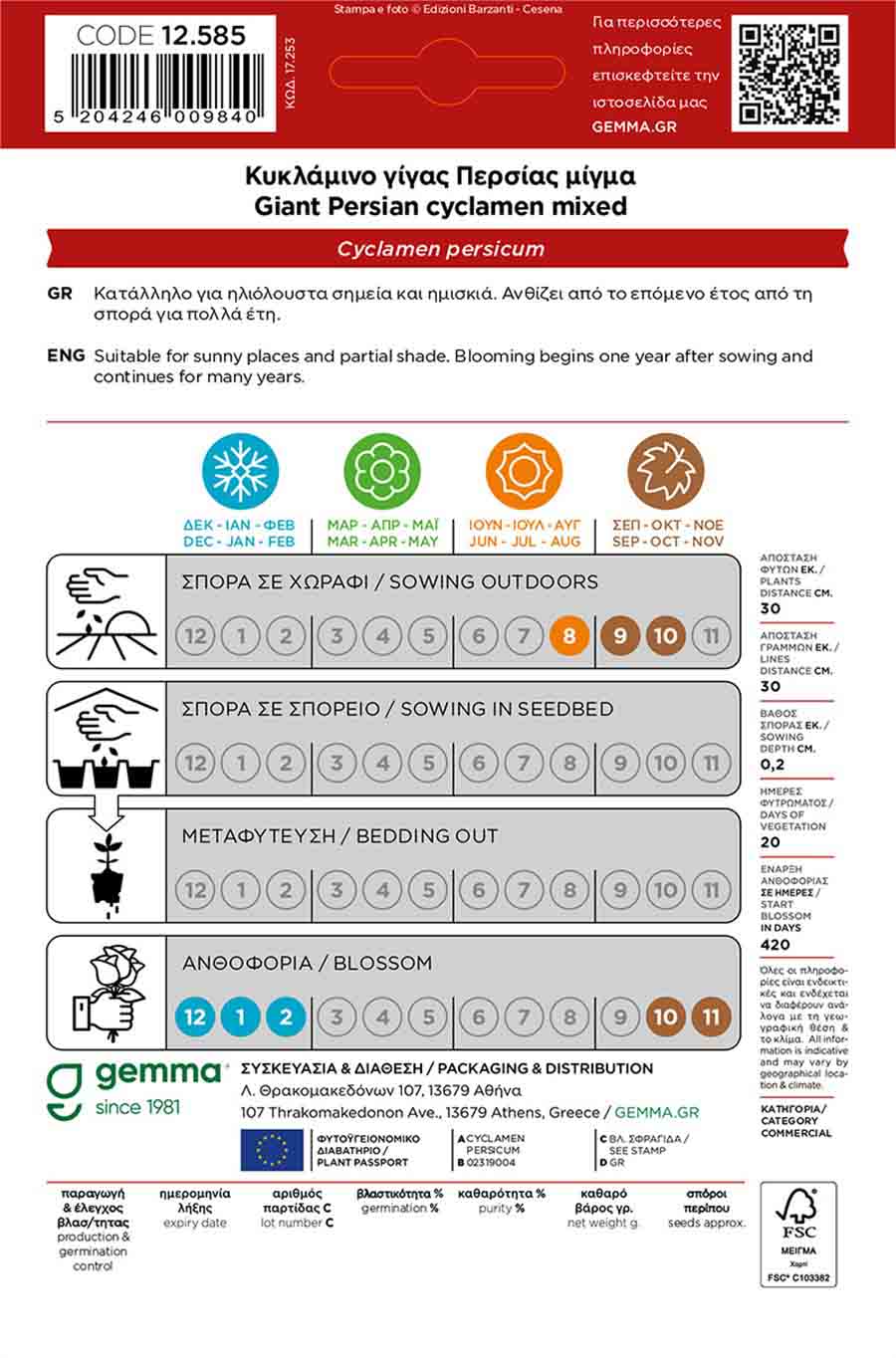 Ημέρες φυτρώματος: 20.