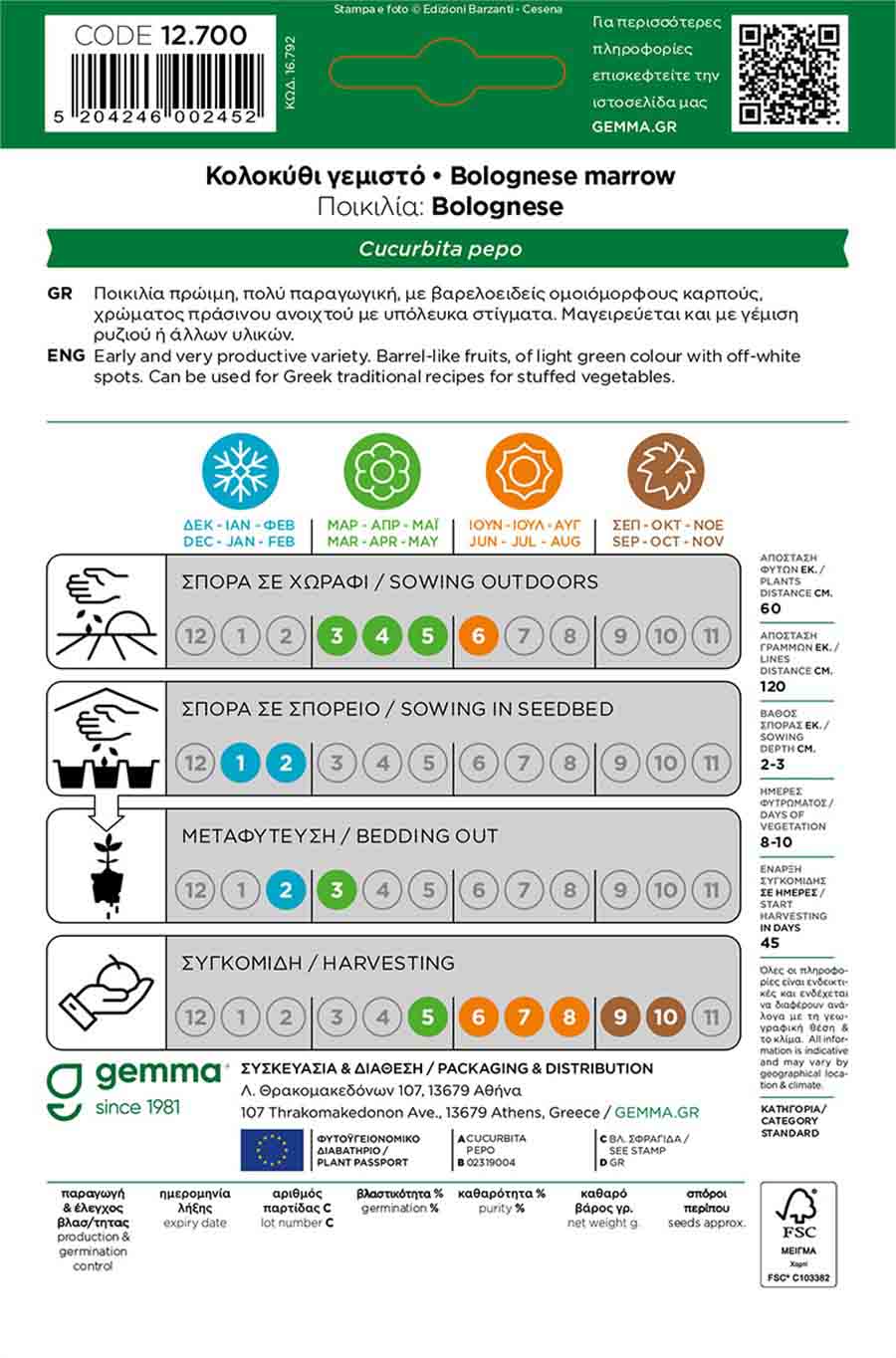 Απόσταση φυτών (εκ.): 60.