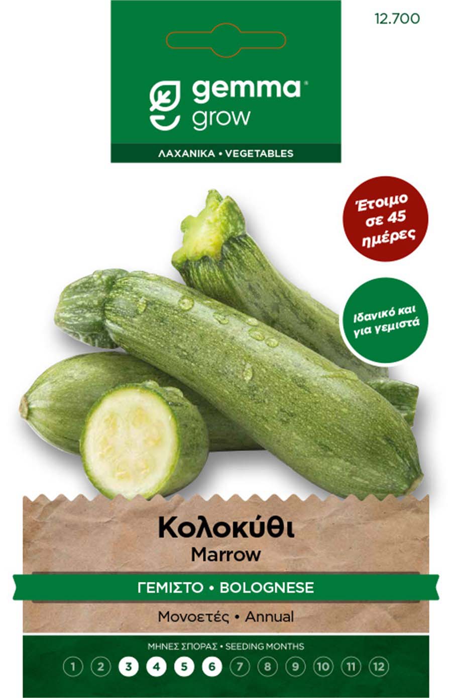 Ιδανικό και για γεμιστά. Έτοιμο σε 45 ημέρες. Μονοετές. Ποικιλία πρώιμη, πολύ παραγωγική, με βαρελοειδείς ομοιόμορφους καρπούς, χρώματος πράσινου ανοιχτού με υπόλευκα στίγματα. Μαγειρεύεται και με γέμιση ρυζιού ή άλλων υλικών.