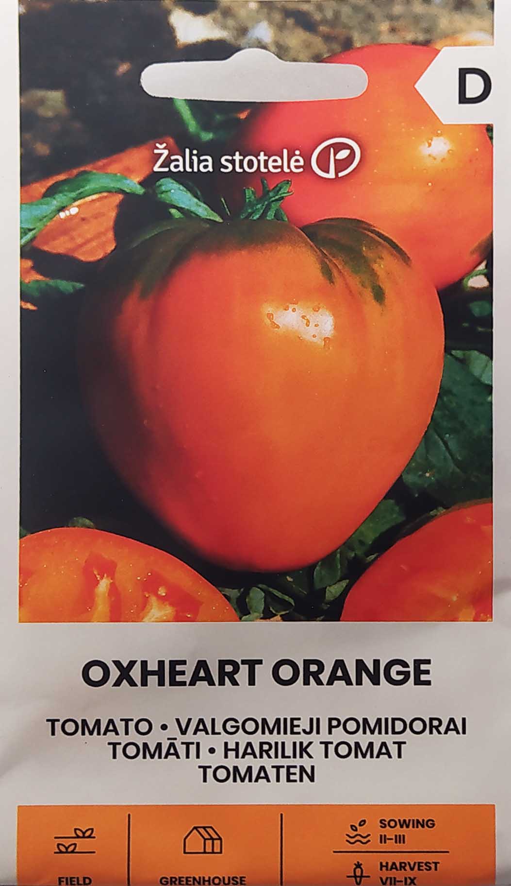Μεσο-πρώιμη, παραγωγική, παραδοσιακή ποικιλία αναρριχώμενης τομάτας. Οι καρποί της έχουν πορτοκαλί χρώμα και σχήμα καρδιάς. Έχουν πολύ λεπτή φλούδα, καθόλου κοτσάνι και ελάχιστα σπόρια. Είναι μαλακοί, ζουμεροί, με πολύ γλυκιά γεύση. Φτάνουν σε βάρος 250-650 γρ, ενώ πολλές φορές ξεπερνούν κατά πολύ και το 1 κιλό! Ωριμάζουν 75-80 ημέρες μετά την μεταφύτευσή τους. Καλλιεργούνται τόσο στο ύπαιθρο, όσο και στο θερμοκήπιο. Κατάλληλες για σαλάτες, σάντουιτς και σάλτσες.