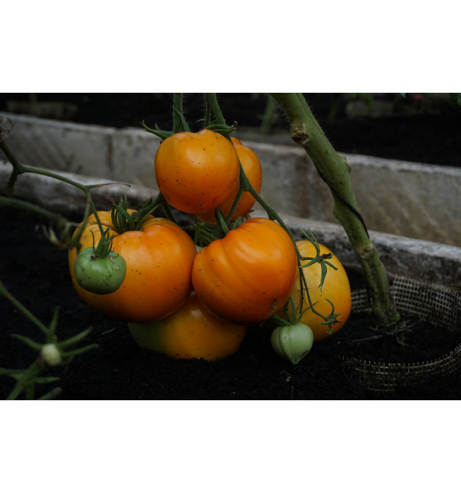 Τομάτα παραδοσιακή Καρδιά του βούβαλου πορτοκαλί. Παραγωγική παραδοσιακή ποικιλία πορτοκαλί, καρδιόσχημης, αναρριχώμενης τομάτας.